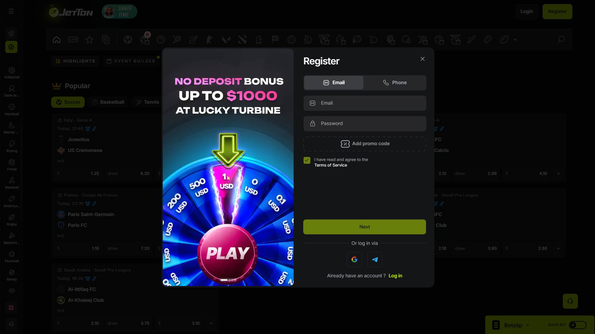- Bonus terms and full promotion details appear only after registration.